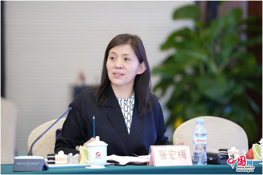 图为大赛组委会副秘书长、中国互联网新闻中心外宣协作部主任张宏梅介绍大赛作品征集情况和评审流程。