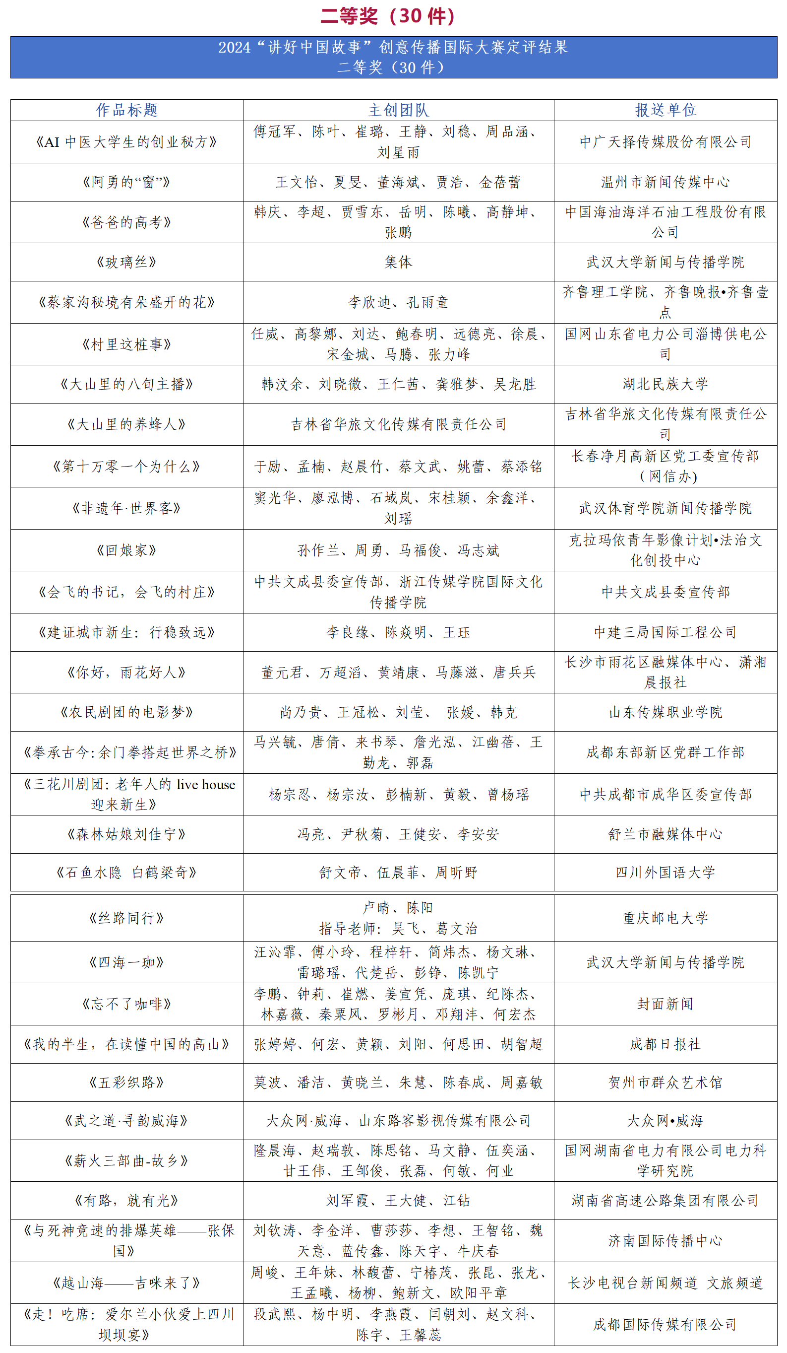2024“讲好中国故事”创意传播国际大赛定评结果公示公告